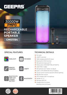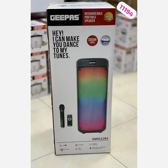 اگر بهدنبال یک اسپیکر بلوتوثی حرفهای و قدرتمند با امکانات کامل هستید، اسپیکر جیپاس امارات مدل GMS11194 یکی از بهترین گزینهها در بازه قیمتی اقتصادی محسوب میشود. این دستگاه با طراحی مدرن، صدای باکیفیت و امکاناتی همچون رادیو، نورپردازی و میکروفون بیسیم، تجربهای فراتر از انتظار ارائه میدهد.
