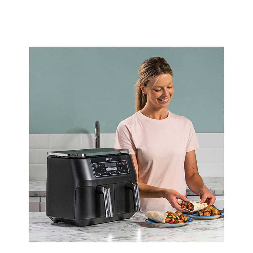 Dual zone:دو سبد مجزا برای پخت غذا, پخت 75 درصد سریع تر از فن های فردار, حالت stand by, عملکرد MAX CRISP:پخت سریع تر،داشتن غذای گرمتر و تردتر،با استفاده از دوسبد مجزا, قابلیت پخت 1.8 کیلوگرم سیب زمینی س
