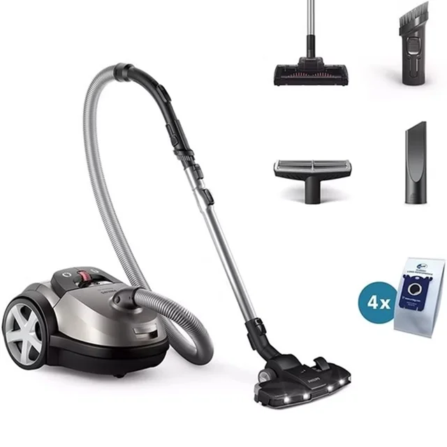 کیسه S-bag با ظرفیت بالا، مجهز به قفل اتوماتیک در زمان خارجکردن برای جلوگیری از پخش گردوغبار، قابل تعویض با انواع پاکتهای فیلیپس.
